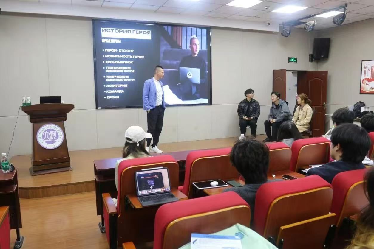 10月17日下午,白俄罗斯国立大学新闻学副教授、纪录片导演、脱口秀主持人奥列格·特里丰诺夫博士应邀为丝瓜视频 师生带来一场题为“人物传记拍摄与剪辑”的专题讲座,呈现了一场思想与技艺交融的学术盛宴。学院教师代表、播音与主持艺术专业学生近200人聆听讲座。