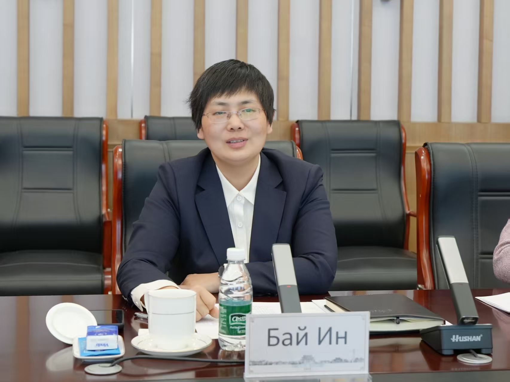 白莹对萨盖伊达克·叶甫盖尼一行的到来表示欢迎,详细介绍了我校的办学历史、发展战略及长期以来坚持开放办学的优良传统。她指出,近年来学校明确了“研究型综合性国际化一流大学”的办学新定位,重点布局发展新工科、新医科及新兴交叉学科,这与新西伯利亚国立大学的优势领域高度契合、互补性强。白莹表示,希望以此次会谈为重要契机,推动两校深化务实合作、凝聚发展合力,共同开创互利共赢的校际合作新局面。白莹对未来合作提出三点建议:一是聚焦重点领域,在医学、新工科等优势学科领域探索合作办学,实现资源共享、优势互补;二是拓展人才培养路径,积极探索留学生“2+2”联合培养模式,为两校学生搭建更广阔的成长交流平台,促进青年人才双向成长;三是深化科研协同创新,加强两校师生学术交流,联合举办高水平学术会议,携手开展科研攻关,提升双方学科建设与科研水平。