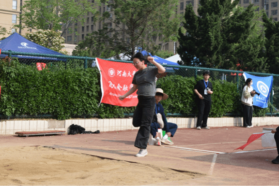 踏跳、腾空、落地,一连串动作干脆利落,尽显欧亚学子的飒爽风姿。在跳远赛场上,他们目光坚定,奋力向前,以轻盈的身姿越向远方,跃出少年的锋芒。